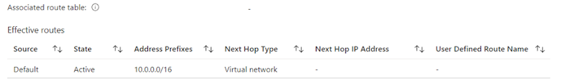 route table , and applied it to FirstVnet (10.0.0.0/16)